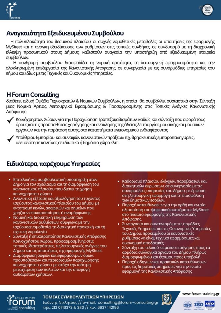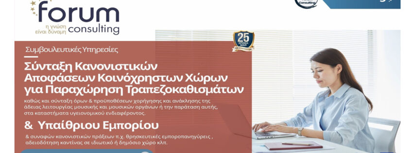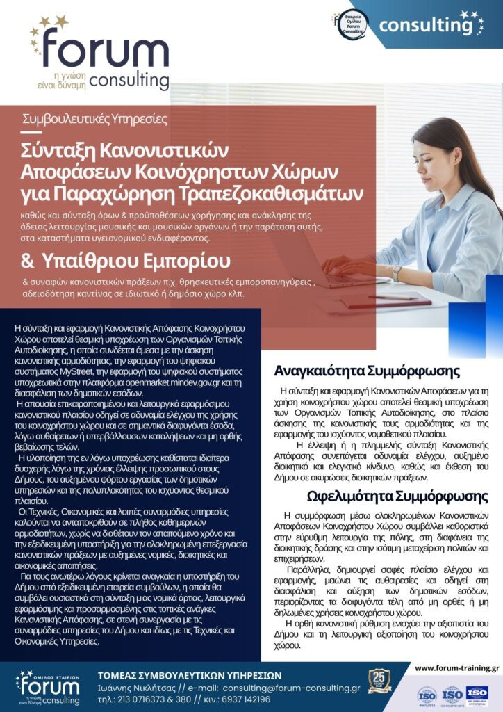 “Σύνταξη Κανονιστικών Αποφάσεων Κοινόχρηστων Χώρων – Παραχώρηση Τραπεζοκαθισμάτων – Υπαίθριο Εμπόριο”