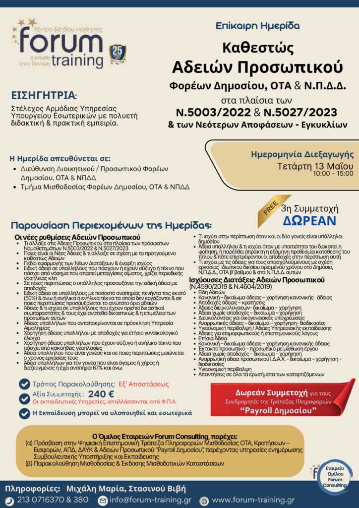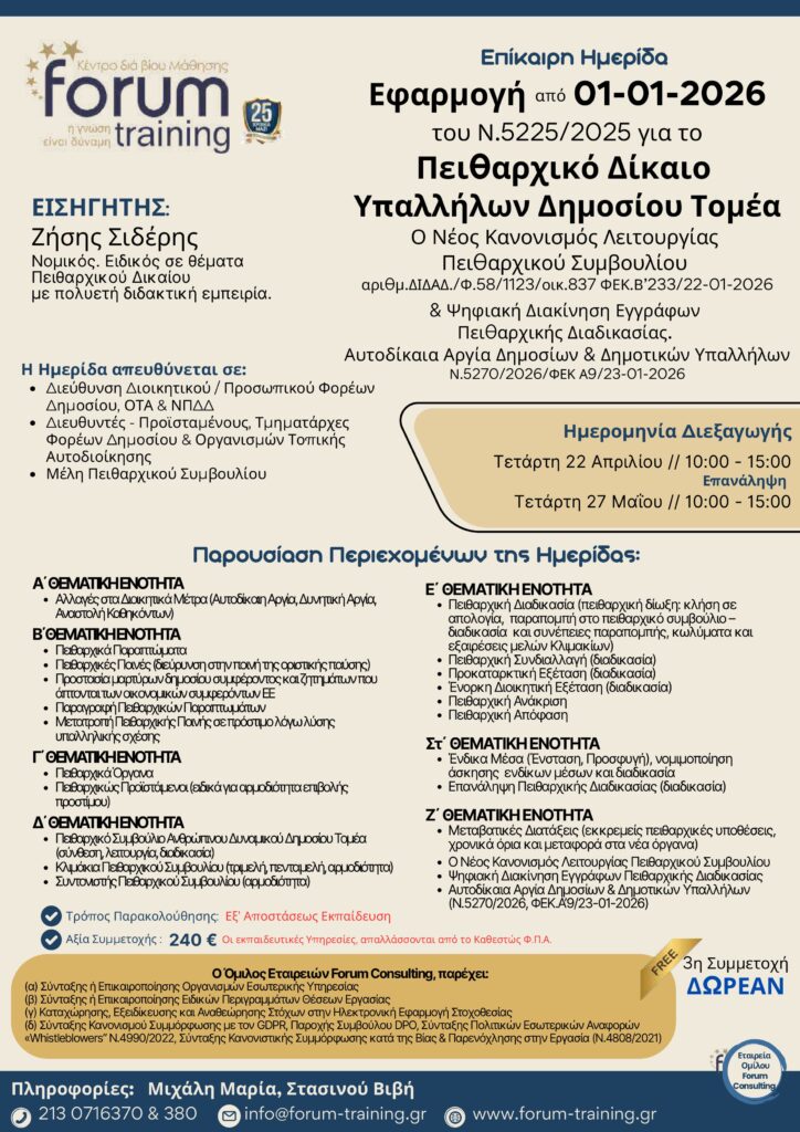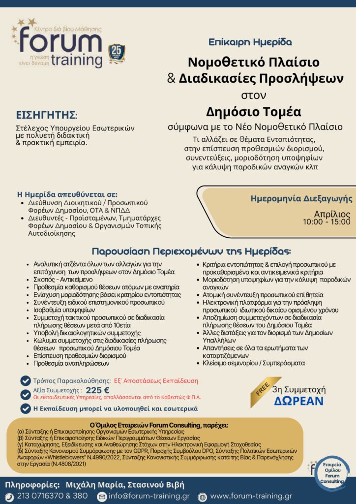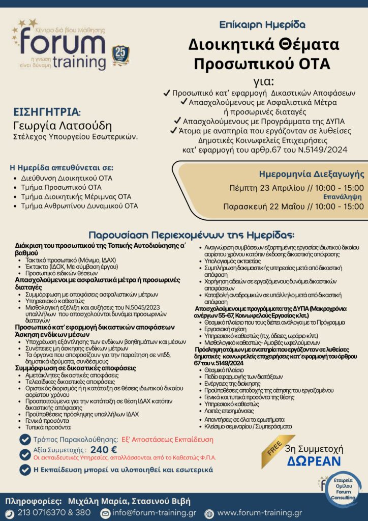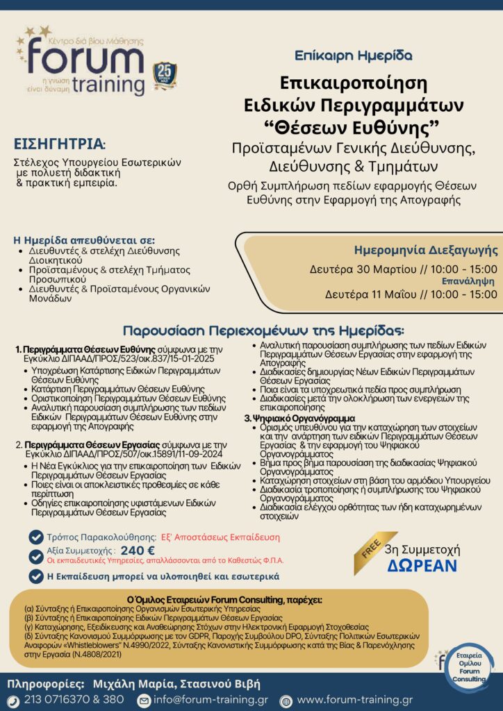 Πληροφορίες: Τερζάκη Στέλλα, τηλ.. 213 0716370 & 380