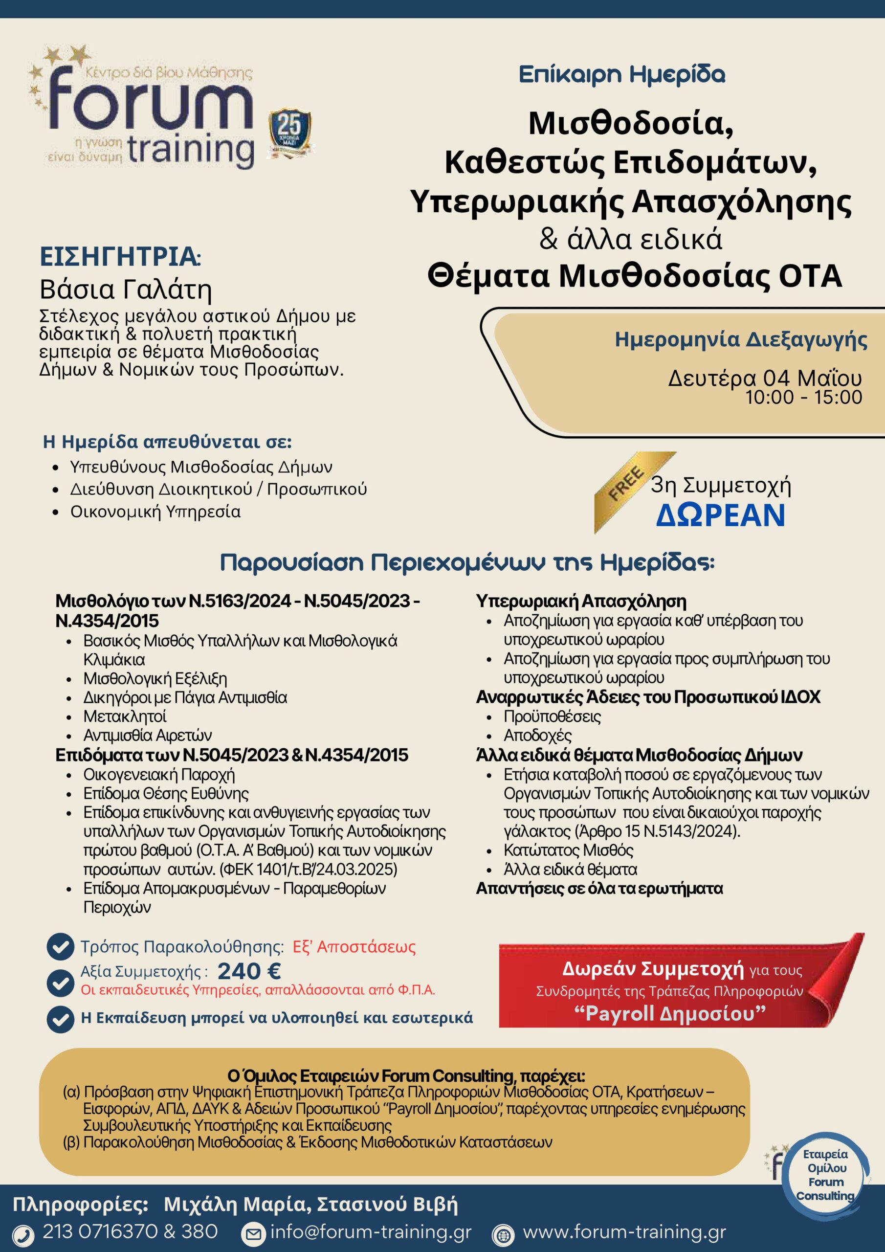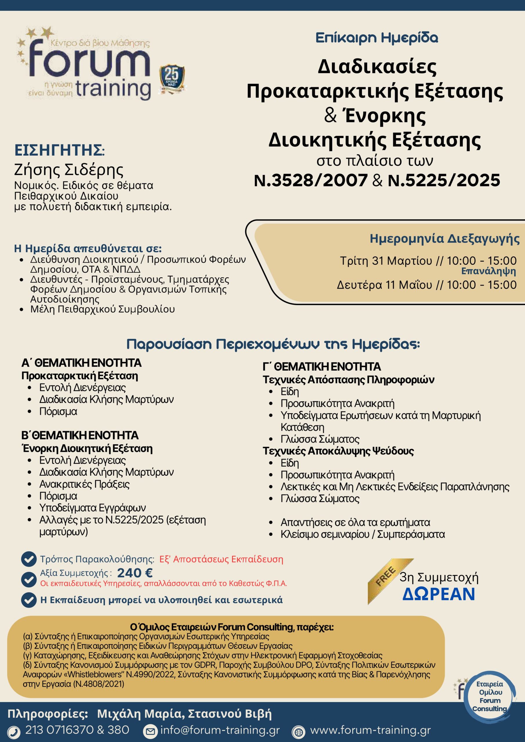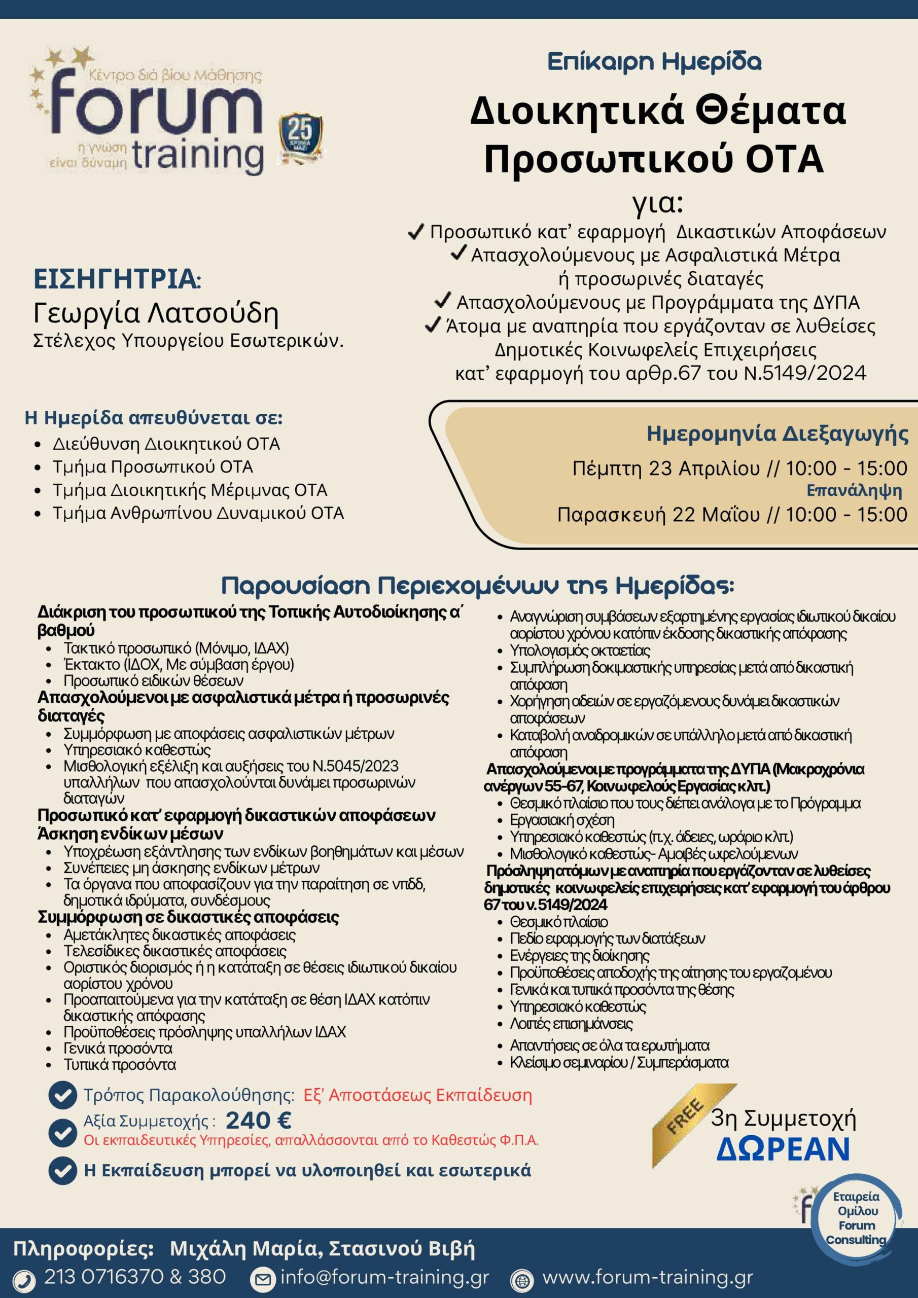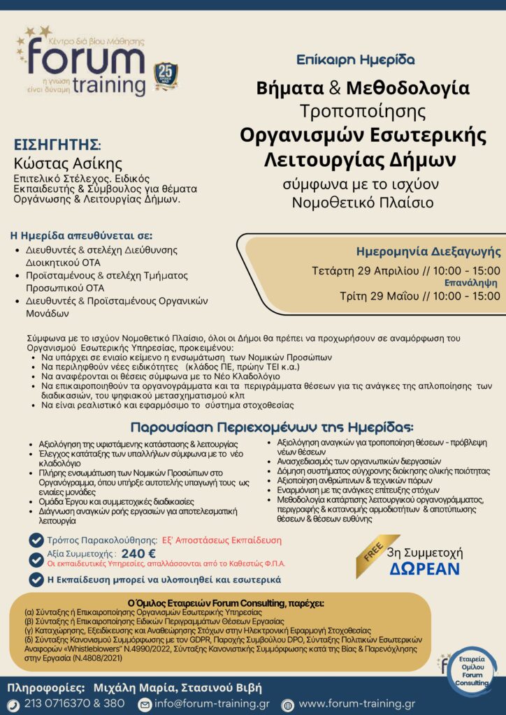 Πληροφορίες: Τερζάκη Στέλλα, τηλ.. 213 0716370 & 380
