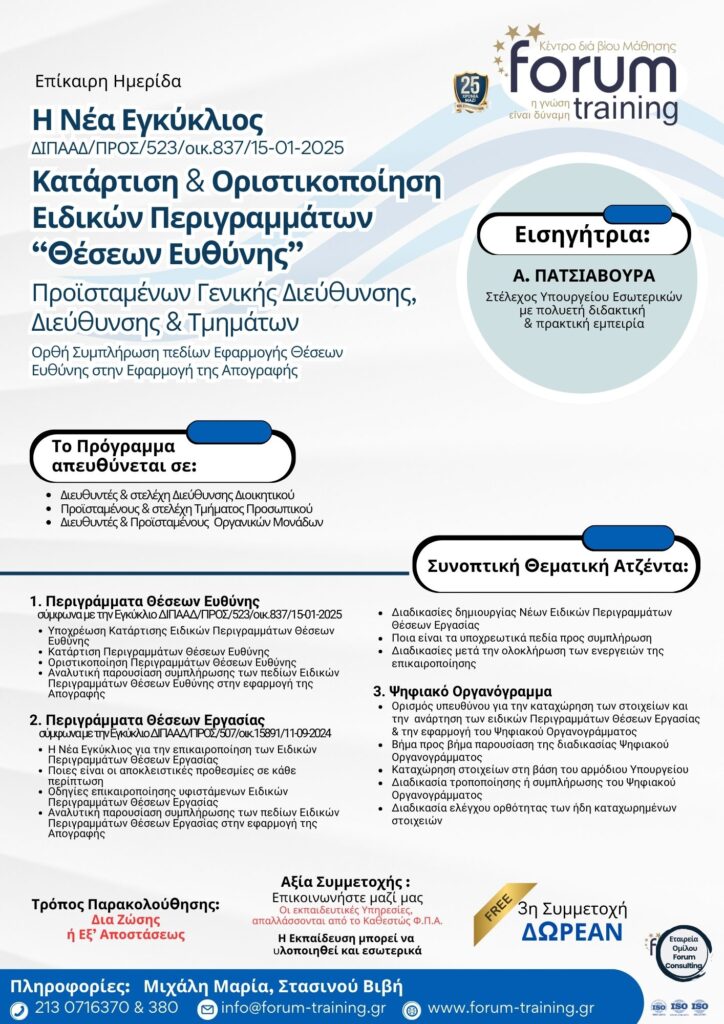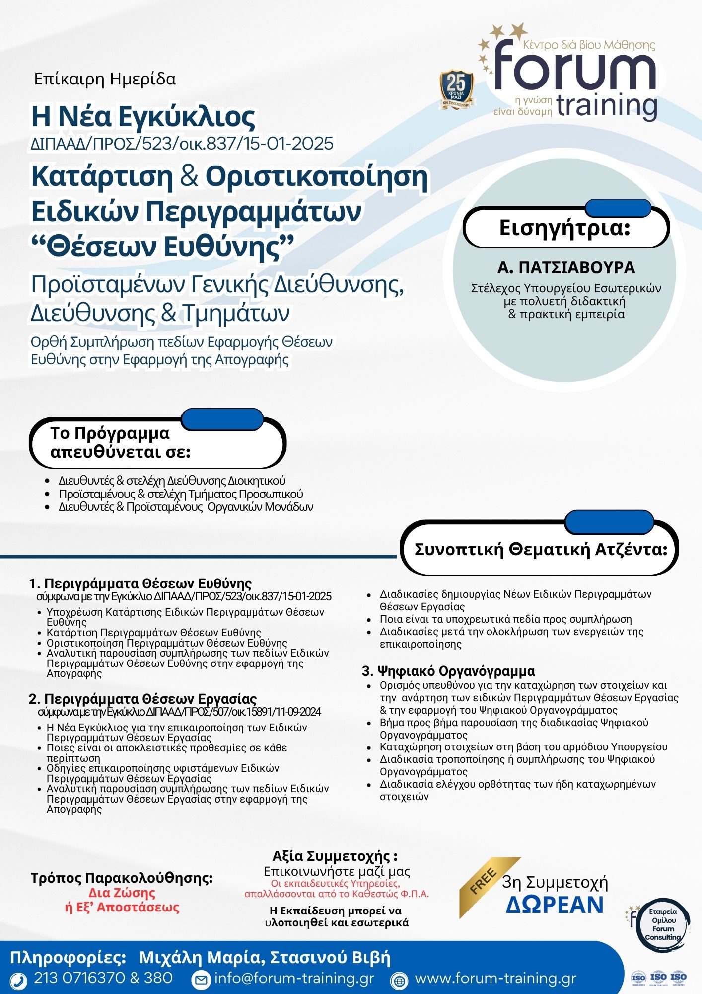 Δια Ζώσης: Αθήνα – Forum Training Center – Λιοσίων 117, Πλ. Αττικής – ΤΚ10440