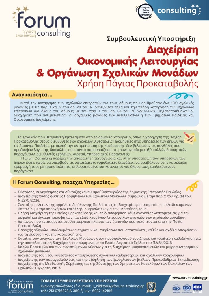 Διαχείριση Οικονομικής Λειτουργίας & Οργάνωση Σχολικών Μονάδων - Παγία Προκαταβολή