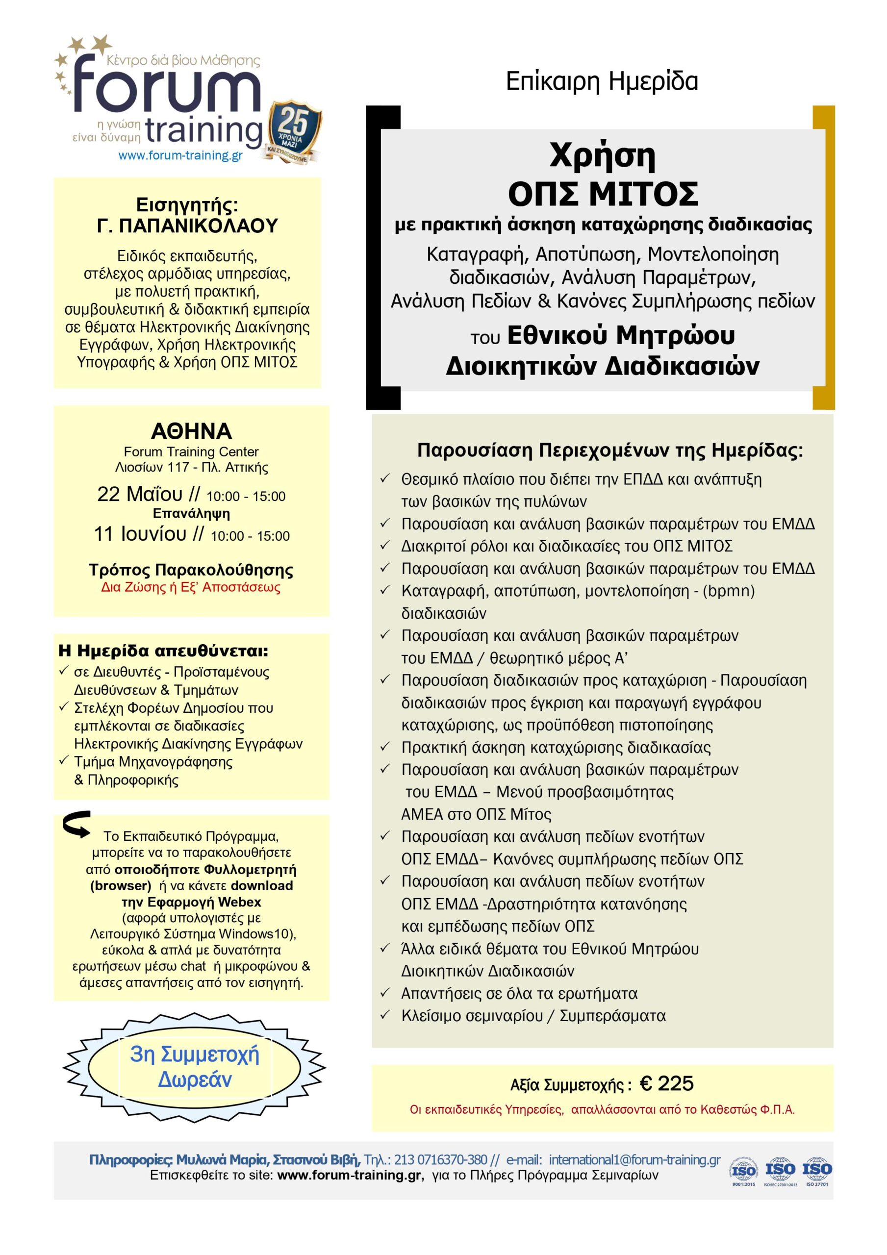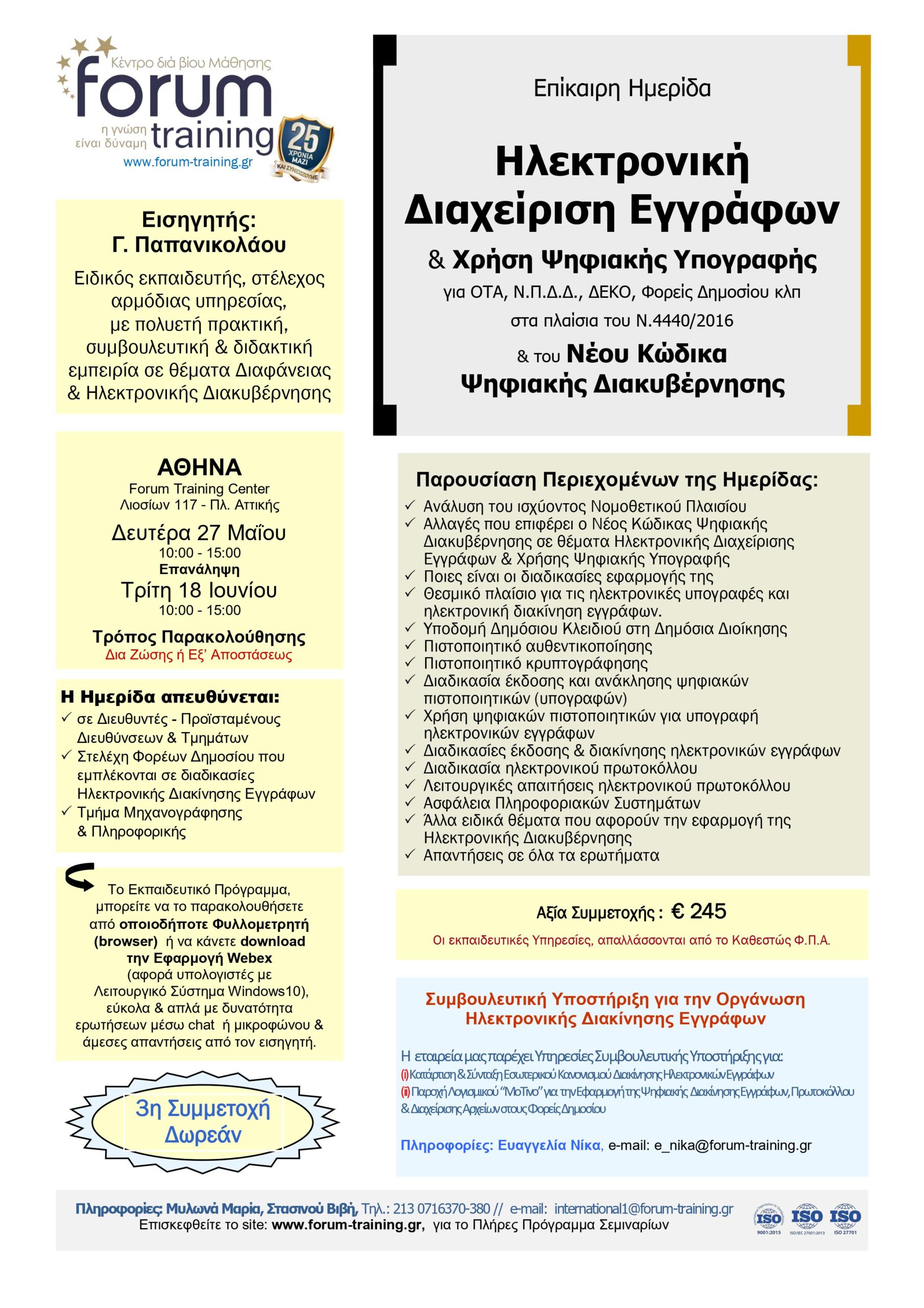 Πληροφορίες: Τερζάκη Στέλλα, τηλ.. 213 0716370 & 380