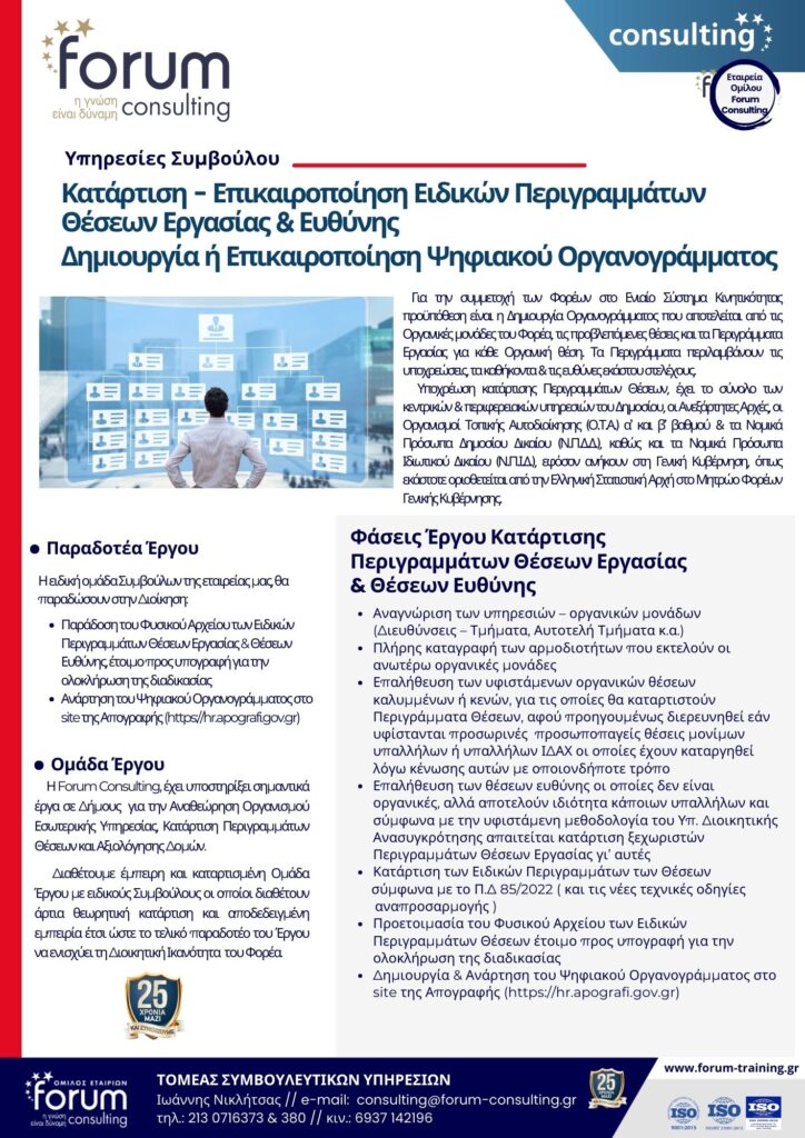 “Επικαιροποίηση Ειδικών Περιγραμμάτων Θέσεων Εργασίας & Ευθύνης – Δημιουργία Ψηφιακού Οργανογράμμτος”