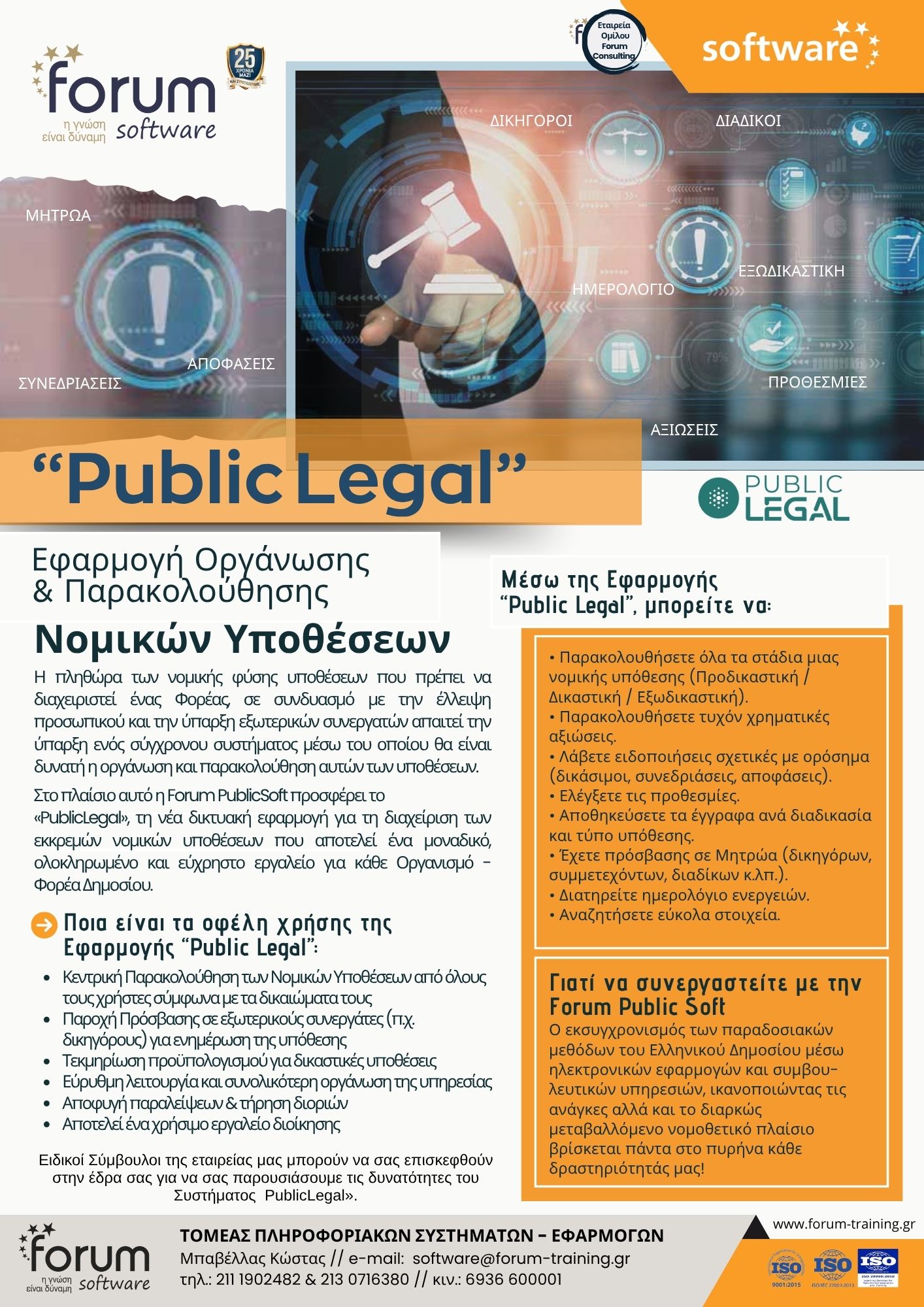 Σας ευχαριστούμε που μας δίνετε τη δυνατότητα να σας αποστείλουμε ενημερωτικό υλικό σχετικά με την Εφαρμογή Οργάνωσης & Παρακολούθησης Νομικών Υποθέσεων “PublicLegal”.