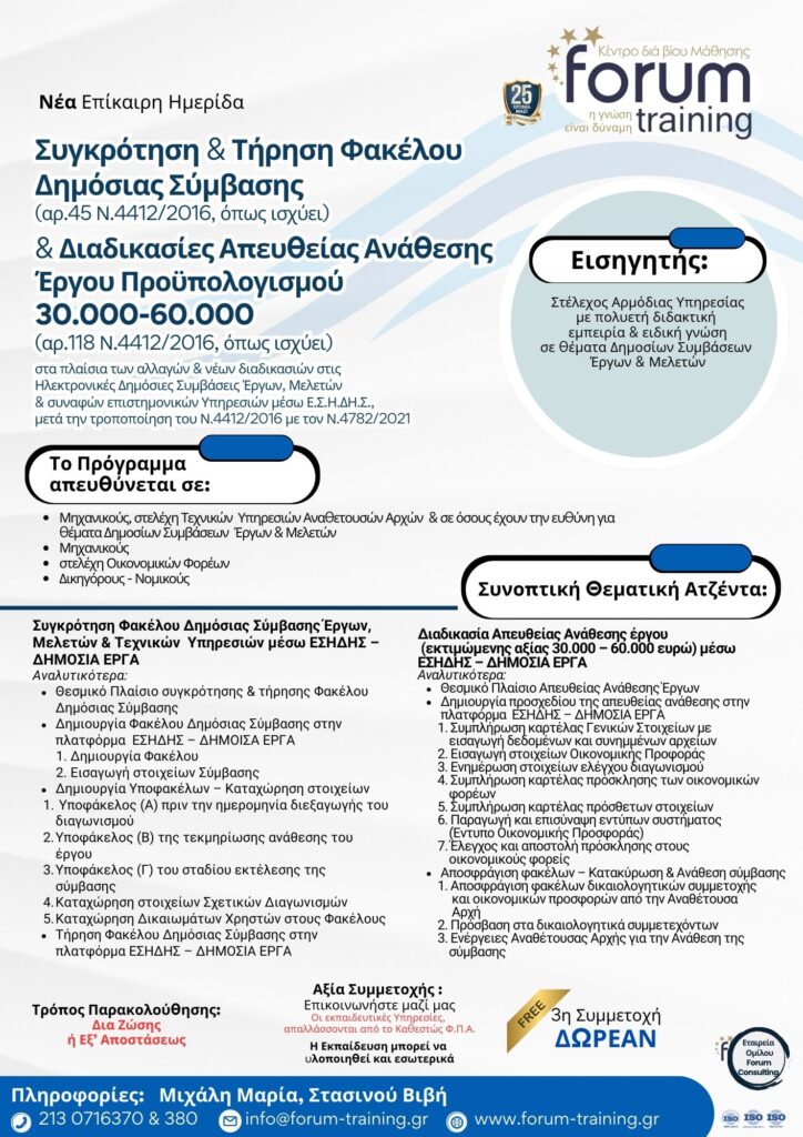 Δια Ζώσης: Αθήνα – Forum Training Center – Λιοσίων 117, Πλ. Αττικής – ΤΚ10440