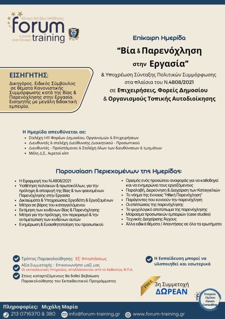 Πληροφορίες: Τερζάκη Στέλλα, τηλ.. 213 0716370 & 380